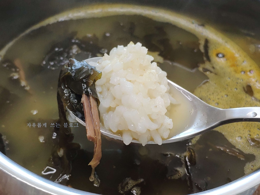 미역이 꽤 넉넉하게 들어 있고 식감도 적당히 부드러운 편이라 먹기에 좋습니다.