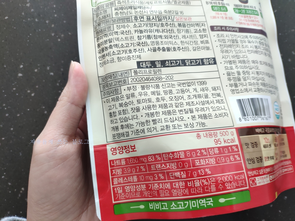 칼로리는 총 내용량 500g에 95kcal인데, 칼로리는 생각보다 높지 않네요. 다만 나트륨이 조금 높은 편이라 주의해야 할 듯합니다.
