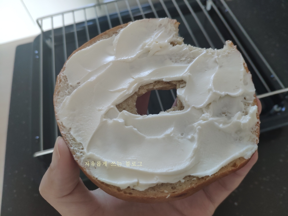 그냥 베이글만 먹어도 맛있었지만 냉장고에 얼른 먹어야 하는 크림치즈가 있어 함께 곁들여 먹었습니다.