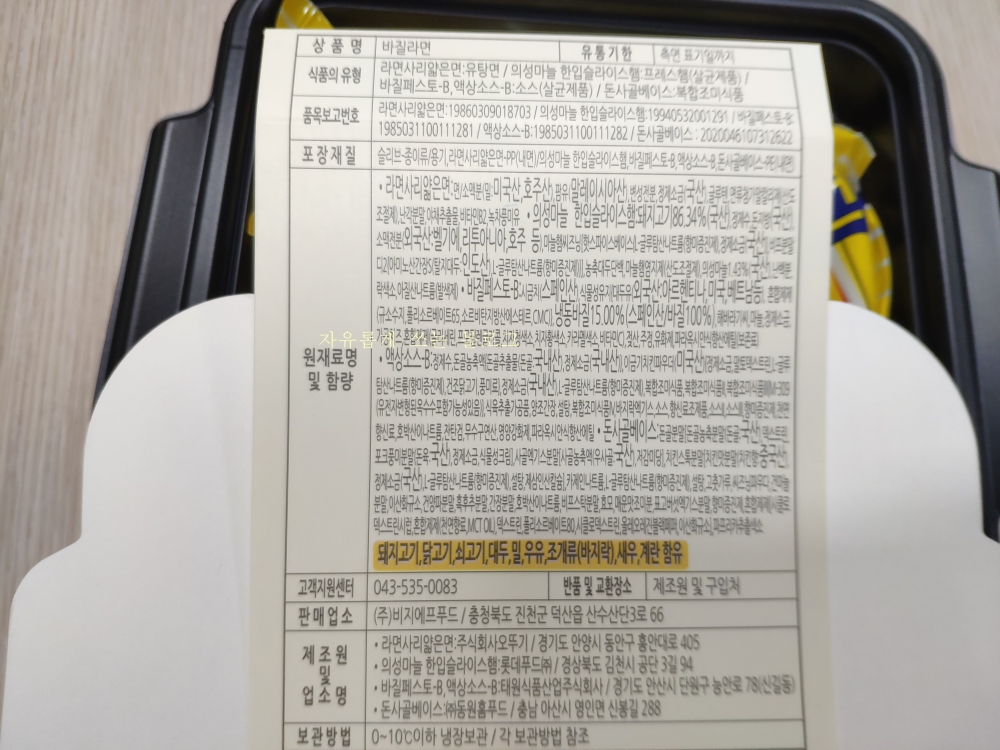 편스토랑 바질 라면의 구성입니다.