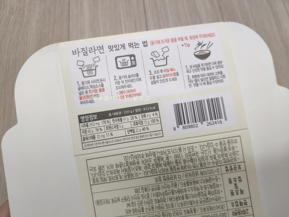 맛이 다소 짠 편이기 때문에 물을 약간 넉넉하게 잡으셔도 괜찮을 것 같고, 나트륨 함량이 꽤 높기 때문에 국물은 조금 남기는 것을 추천드려요.^^;;