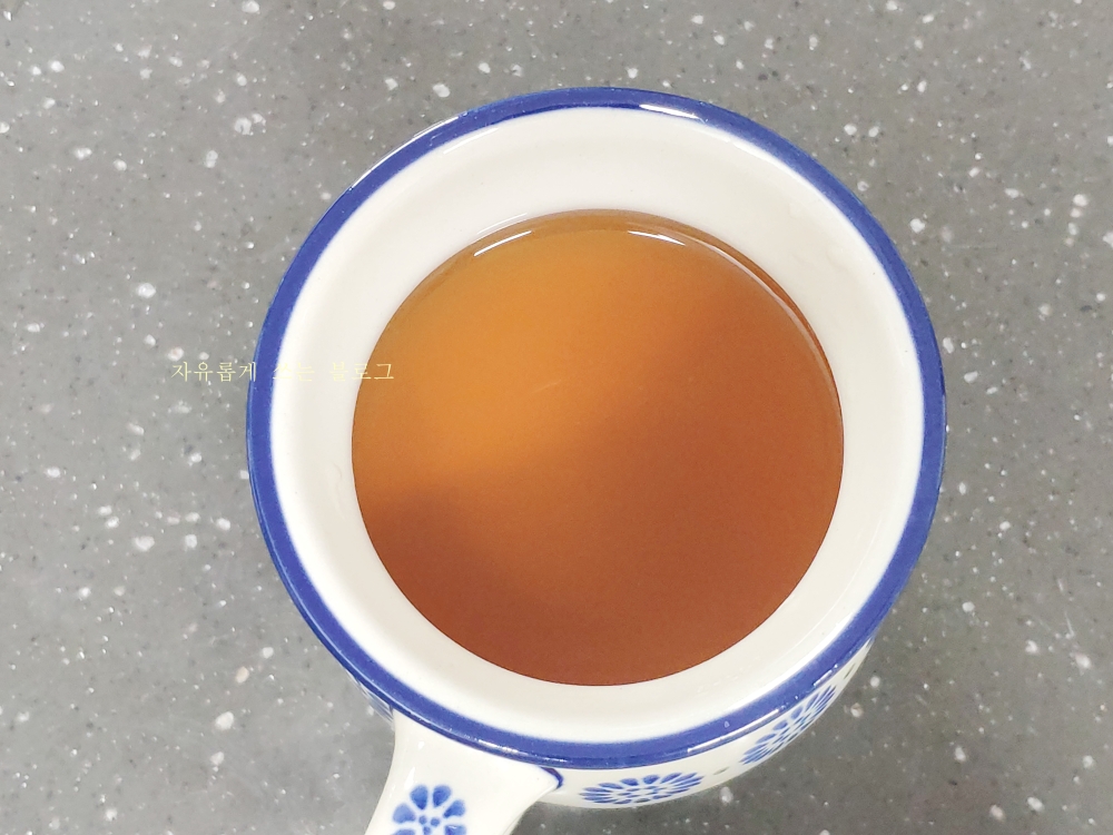 아래 첫번째 사진이 물을 부은 직전, 두번째 사진은 5분 정도 우려낸 뒤의 모습입니다.