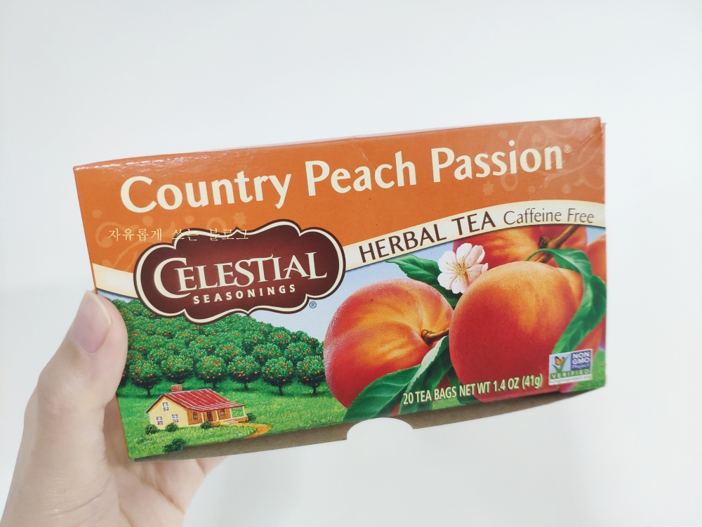 셀레스티얼 시즈닝 (celestial seasonings)의 '컨트리 피치 패션 허브티'에 대한 후기를 남겨보려고 해요. :)