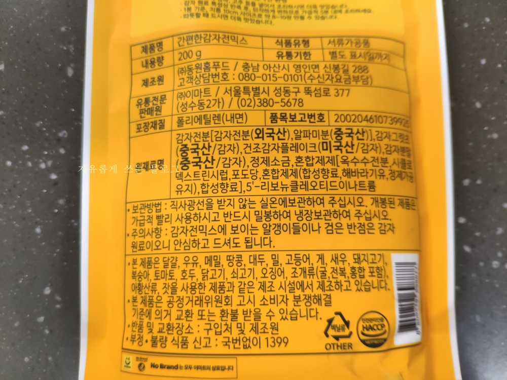 그럼 지금부터 노브랜드 감자전 믹스 자세하게 보여드리도록 할게요.