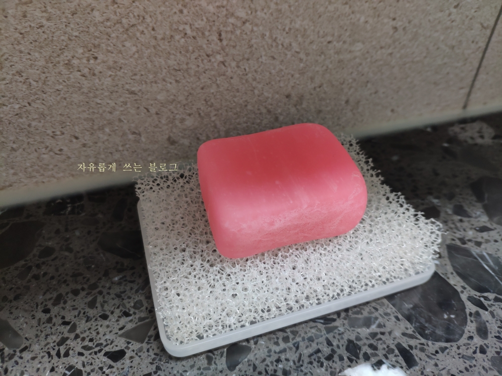 비누를 사용하고 툭, 올려놓으면 됩니다. 사용해보니 물이 정말 잘 빠져서 비누가 빨리 건조되는 느낌이에요.