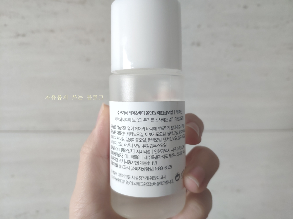 오늘은 얼마전 직접 구매해 정말 잘 사용중인, 수오가닉 헤어 바디 올인원 에센셜오일에 대한 후기를 남겨보려고 해요.