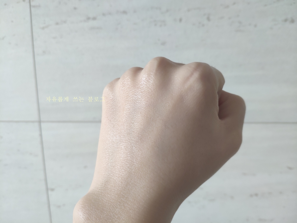 펴발라본 모습입니다. 펴바를 때의 느낌은 굉장히 실키하면서 부드럽게 발리는 느낌이에요.