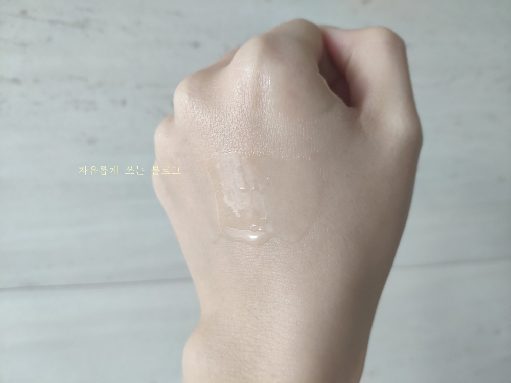 손등에 약간 덜어본 모습이에요. 오일의 느낌은 꾸덕하면서 리치한 느낌이라기보다는 약간 라이트한 느낌이라고 할 수 있을 것 같아요.