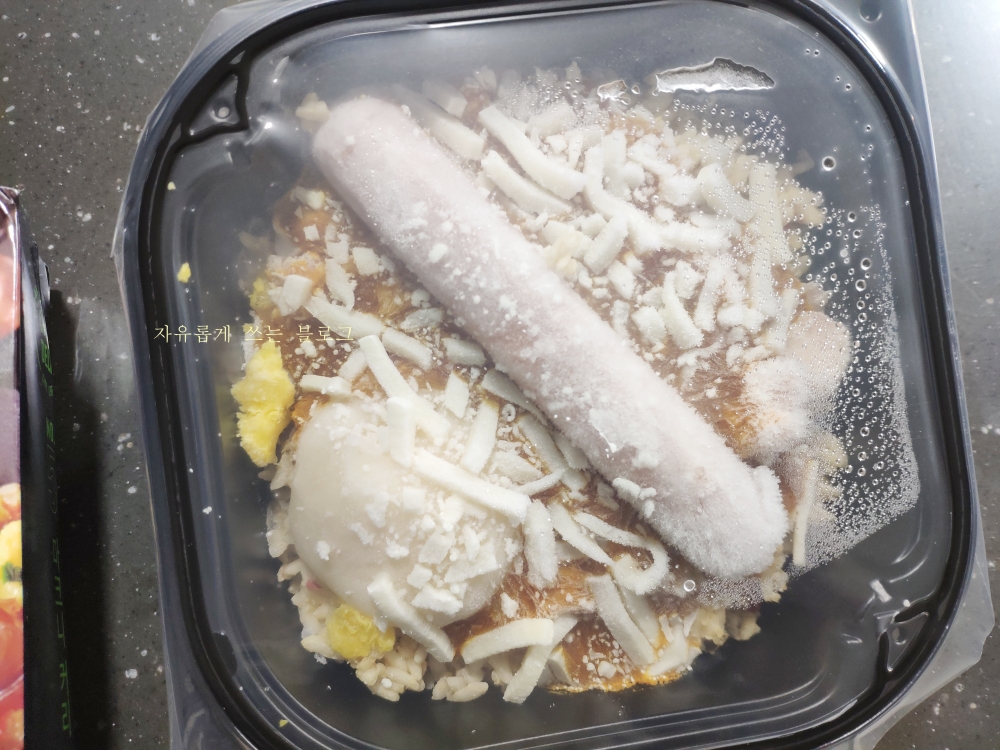 전자레인지에 돌린 뒤 비닐 포장을 뜯어본 모습이에요.