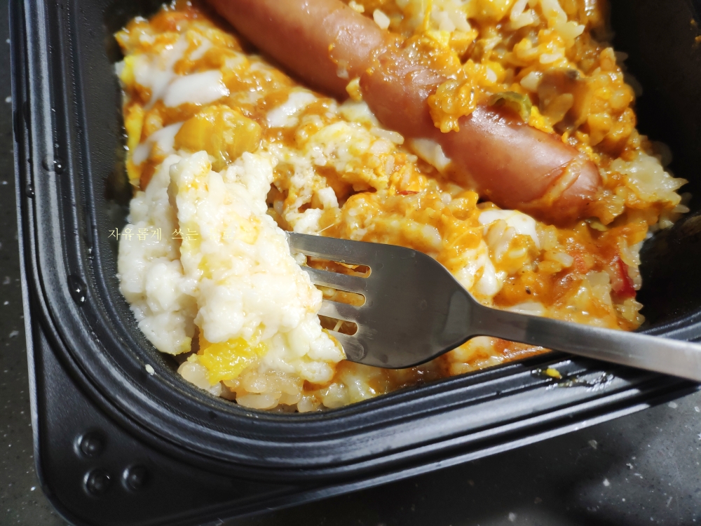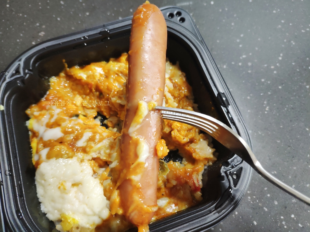 탱글탱글하니 식감도 좋고요. 그냥 밥만 있었으면 밋밋했을텐데 소시지를 넣은게 신의 한수인것 같습니다.