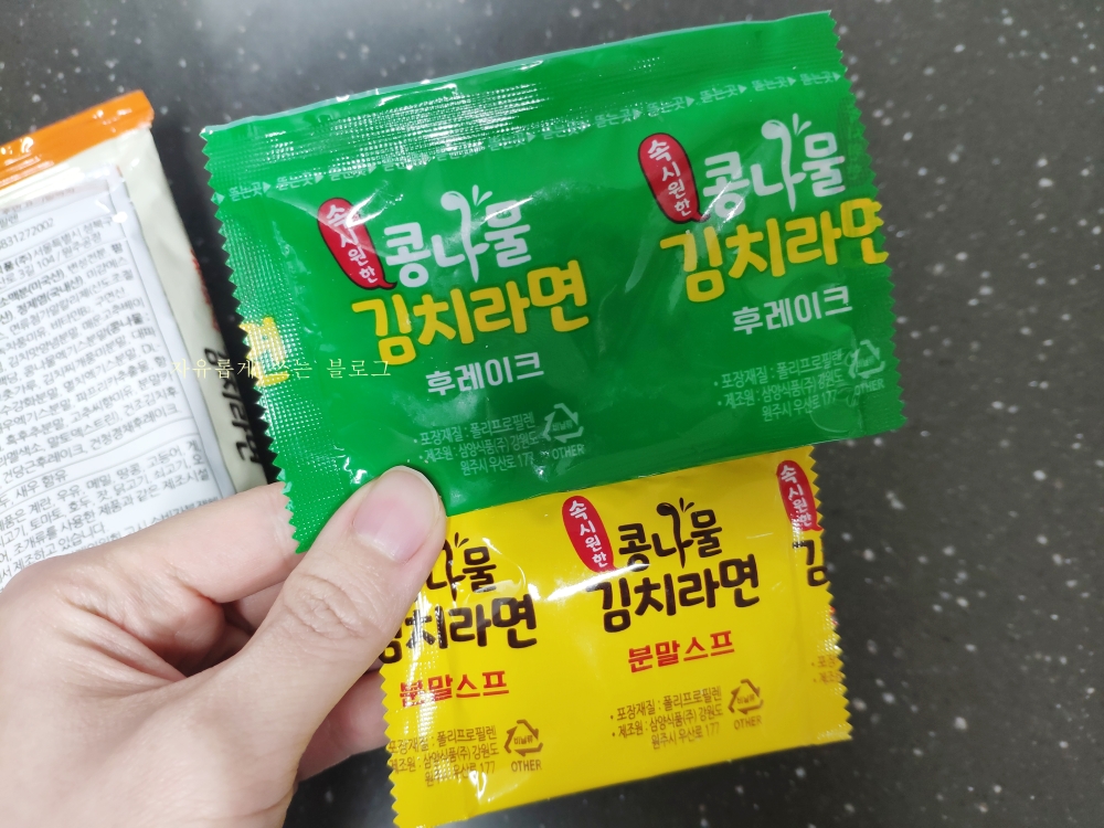 포장 속 사진에는 콩나물이 보이는데 건더기 스프에는 콩나물을 따로 찾아볼 순 없습니다.ㅎㅎ