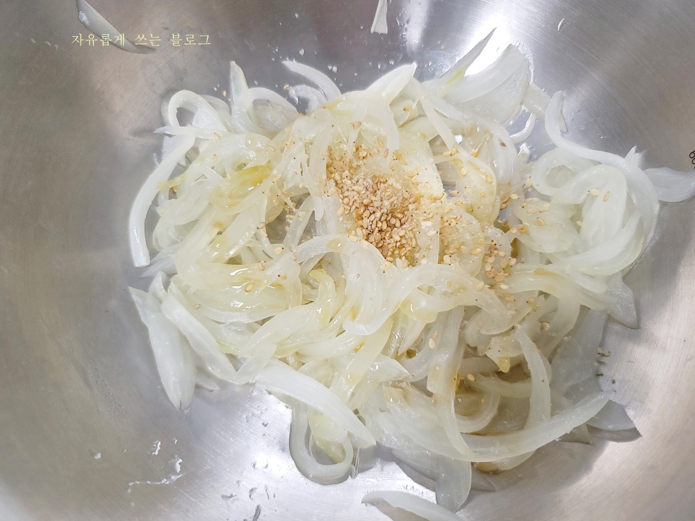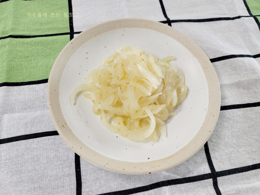 그러다가 양파를 나물로 만들어 먹어도 좋다는 이야기를 유튜브에서 보고 한번 도전해 보았답니다.ㅎㅎ