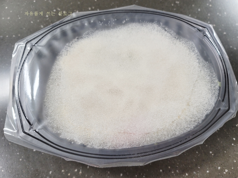 전자레인지에 돌리기 전 모습입니다.ㅎㅎ 요 상태로 비닐을 뜯지 않고 전자레인지에 돌려주었어요.