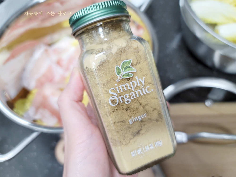 전 아이허브에서 사둔 생강가루가 있어서 생강가루도 함께 살짝 뿌려주었어요. (없는 분들은 생락 가능)