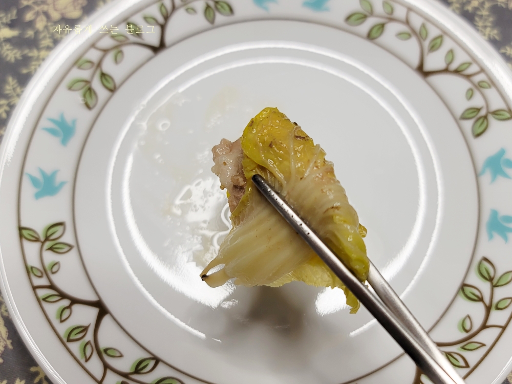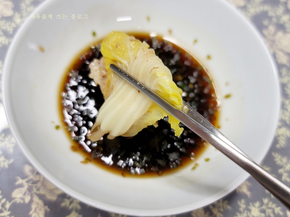 돼지고기의 고소한 맛과 배추의 시원한 맛이 잘 어우러져서 참 맛있더라고요.ㅎㅎ