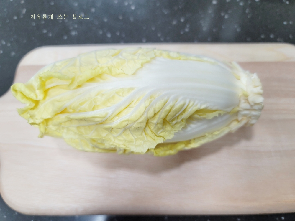 전 안쪽 작은 잎 위주로 사용해서 그대로 사용했지만, 크기가 큰 알배추 잎을 사용하신다면 길게 반으로 잘라 사용하시면 됩니다.