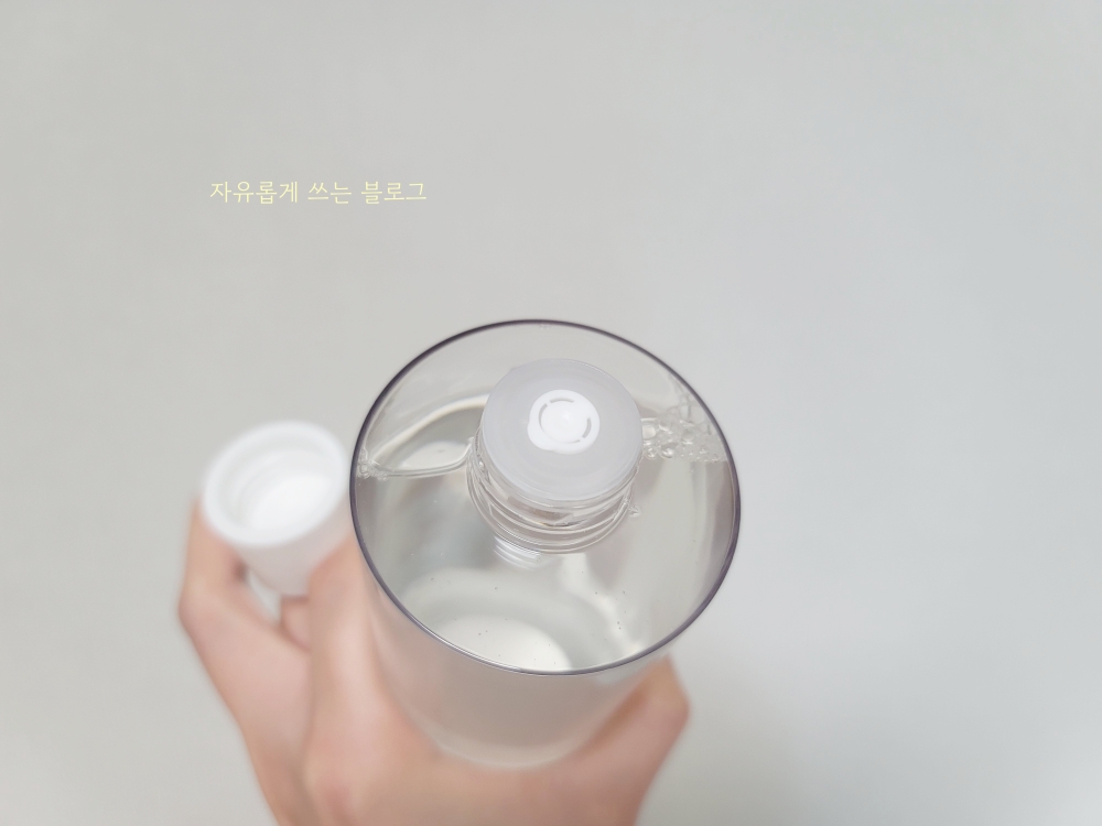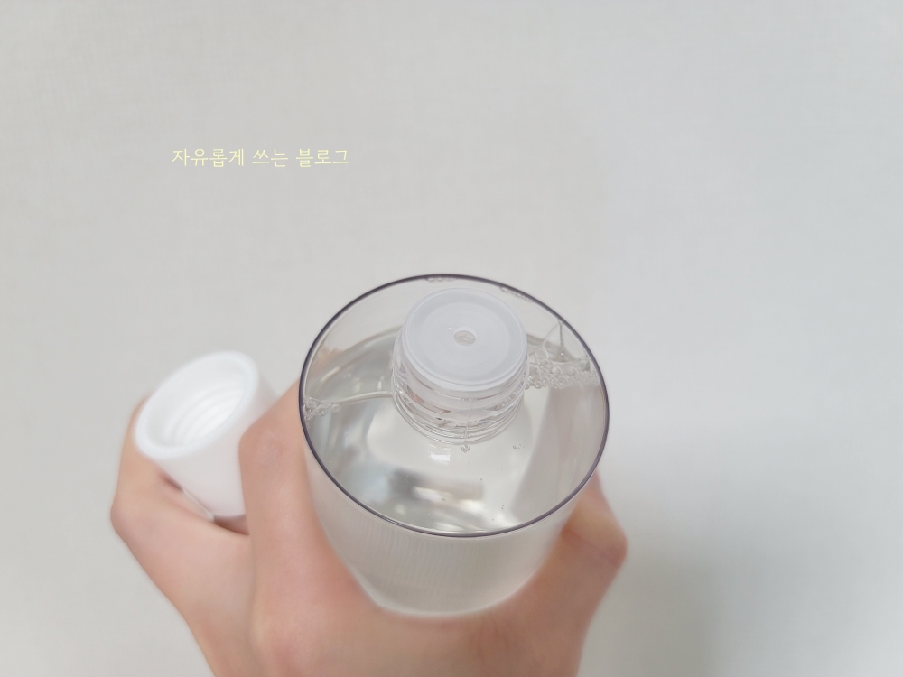 제형은 맑고 투명한, 묽은 느낌의 제형이에요. 닦토로 사용하기 딱 좋은 제형입니다.