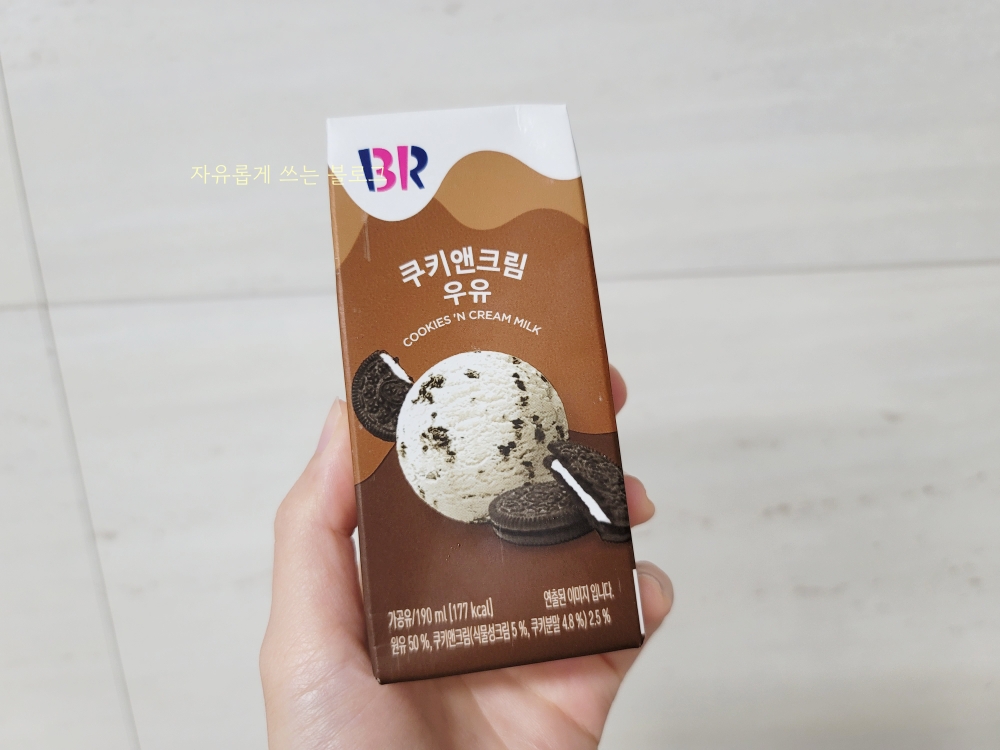 다음으로 맛볼 우유는 바로 배스킨라빈스 쿠키앤크림 우유!