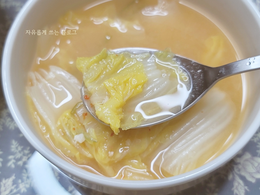 게다가 배추는 생으로는 많이 먹기가 힘든데 국으로 끓여 먹으니 부드러운 식감에 훨씬 술술 넘어가더라고요.