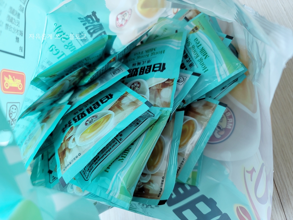 포장을 뜯어본 모습이에요. 1회분씩 소포장 된 밀크티가 총 30봉 들어 있습니다.
