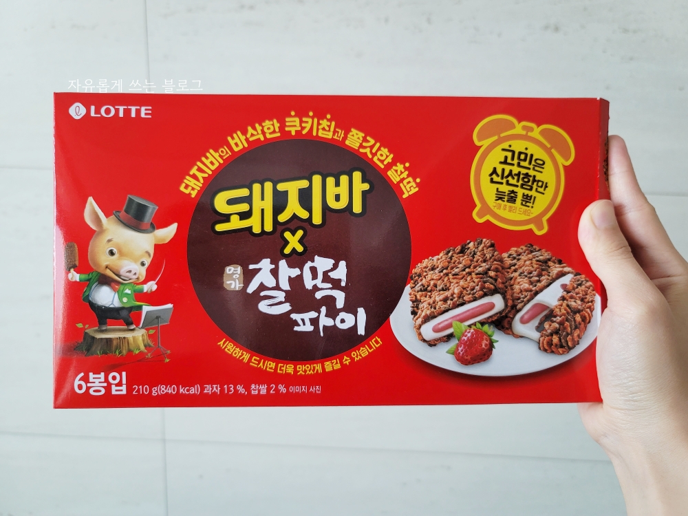 얼마전 마트에 갔는데 처음 보는 과자가 있길래 냉큼 사가지고 왔어요. 바로 '돼지바 찰떡파이' 인데요, 명가 찰떡파이와 돼지바가 콜라보해서 출시된 제품인듯 합니다.
