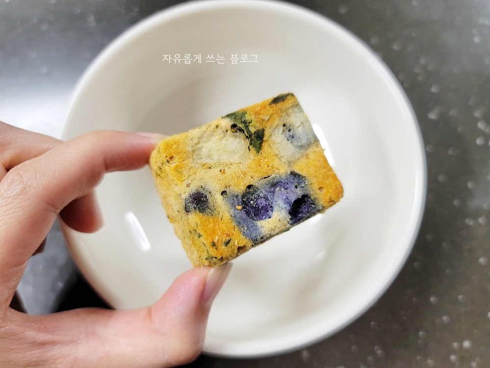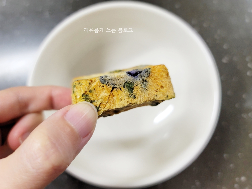 포장을 뜯으면 내용물은 이렇게 생겼습니다. 큐브 형태로 되어 있고, 뜨거운 물을 부으면 국이 완성되는 타입이에요.