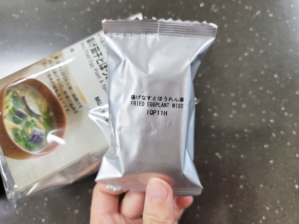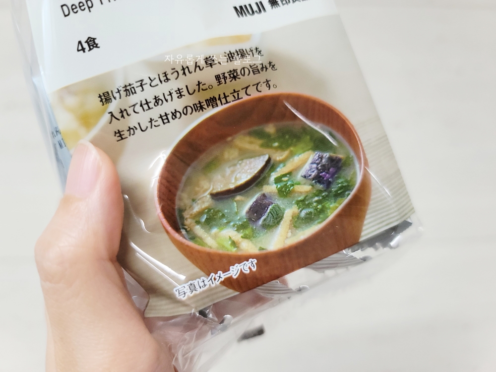 그럼 지금부터 무인양품 튀긴 가지&시금치 미소된장국 자세히 보여드리도록 할게요.