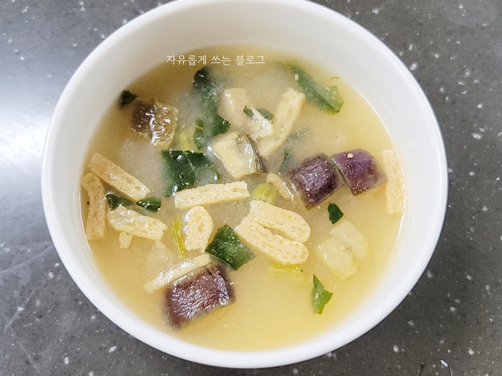 미소된장국에 튀긴 가지가 들어갔다고 해서 어떤 맛일지 궁금해 호기심에 구매해 봤던 제품이에요.