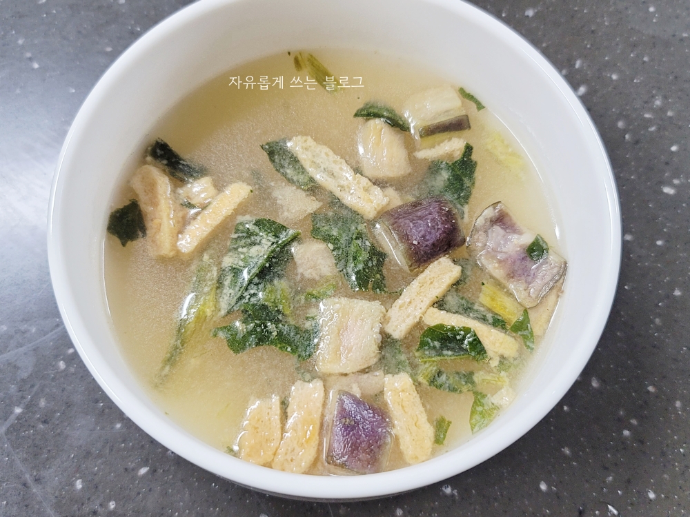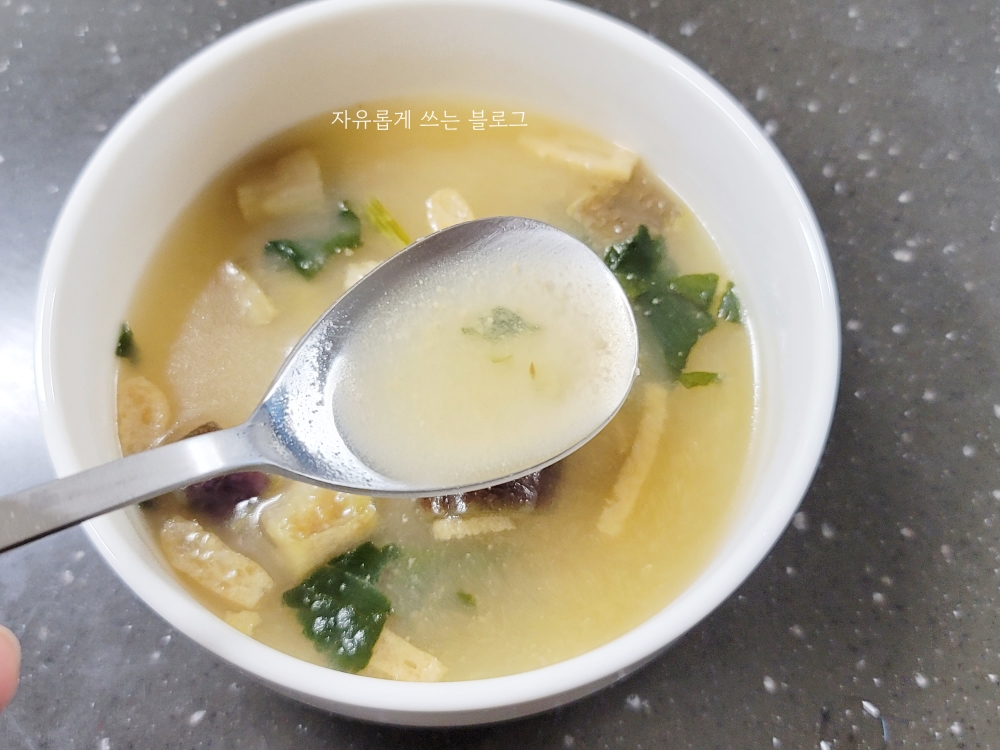 뜨거운 물을 붓기만 하면 이렇게 쉽고 간단하게, 그것도 다양한 재료가 들어간 된장국 한 그릇을 즐길 수 있다니 참 좋은 세상인 것 같습니다.ㅎㅎ