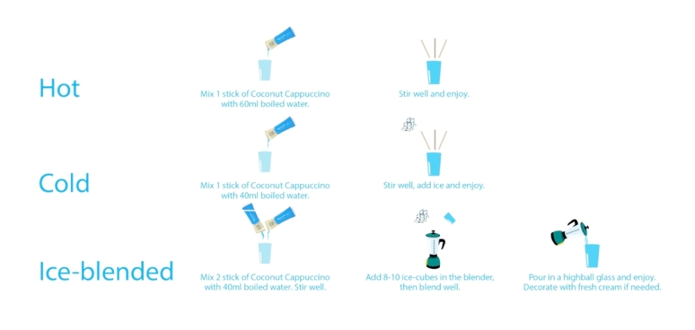 아이스 블렌디드로 마시는 법도 소개가 되어 있었는데요, 스틱 2개를 40ml의 뜨거운물로 녹인 뒤