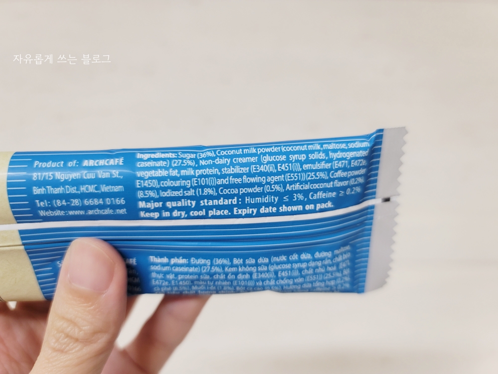 포장 뒷면에는 원재료명이 영어와 베트남어로 가각 표기가 되어 있습니다.