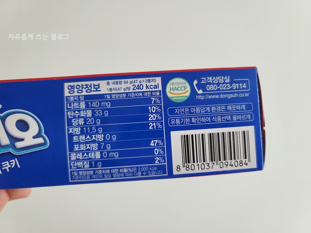 총 2봉이 들어 있는데, 한봉(47g) 당 칼로리는 240kcal이라고 합니다. 달달한 과자인만큼 칼로리는 꽤 높은 편이네요.