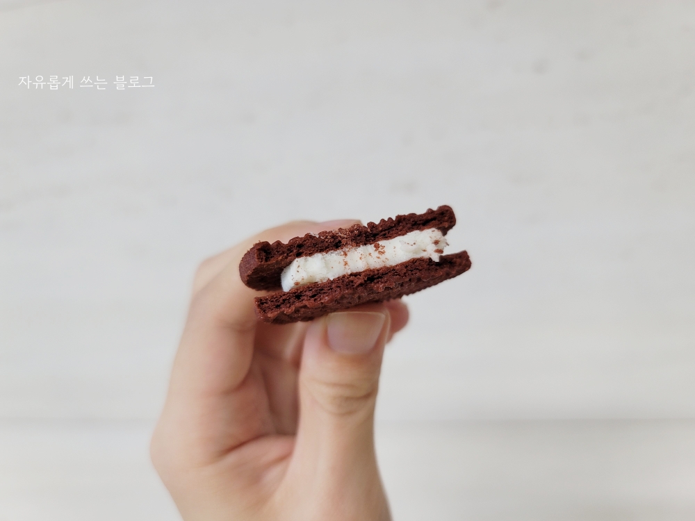 기존 오레오는 진한 코코아의 맛이 느껴졌다면 이건 약간 코코아의 힘을 뺀 듯한 느낌입니다.