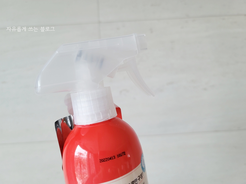 사용 방법은 스프레이 입구 부분의 노즐을 'ON'으로 돌린 다음 오염이 있는 부위에 찍찍 뿌려 주고, 수세미나 스펀지 등으로 문질러 주기만 하면 됩니다. 사용 후에는 물로 충분히 헹궈주라고 하더라고요.