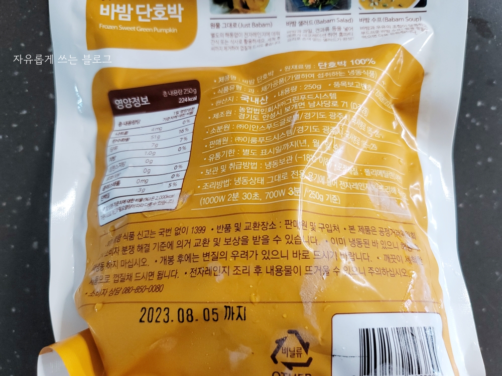 그런데 얼마전 마켓컬리를 둘러보던 중 간편하게 먹을 수 있는 냉동 단호박 제품이 있길래 한번 구매해 보았답니다. :)