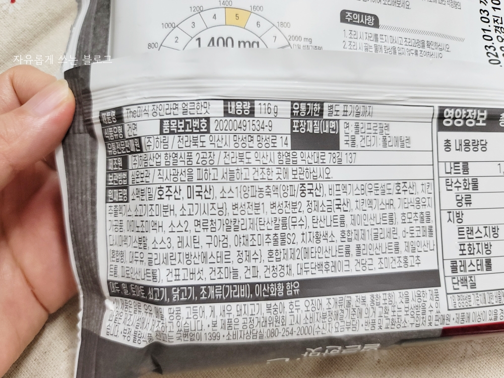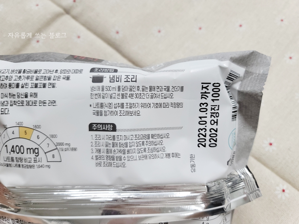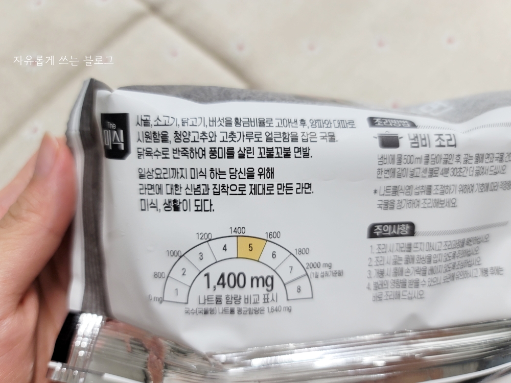 칼로리는 건면답게 390kcal밖에 되지 않습니다. 하지만 나트륨이 높으니 주의!