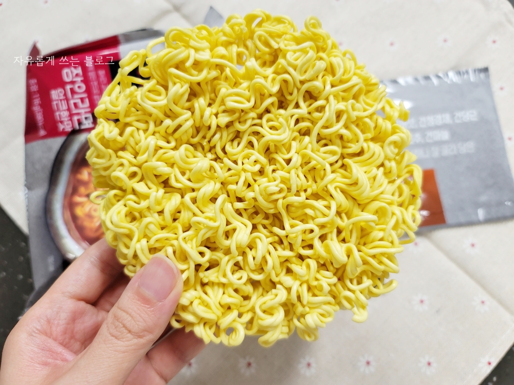 면은 동그랗게 되어 있어서 냄비에 넣기에 편하고 좋았습니다. 색깔이 유독 노란 느낌이 들더라고요.