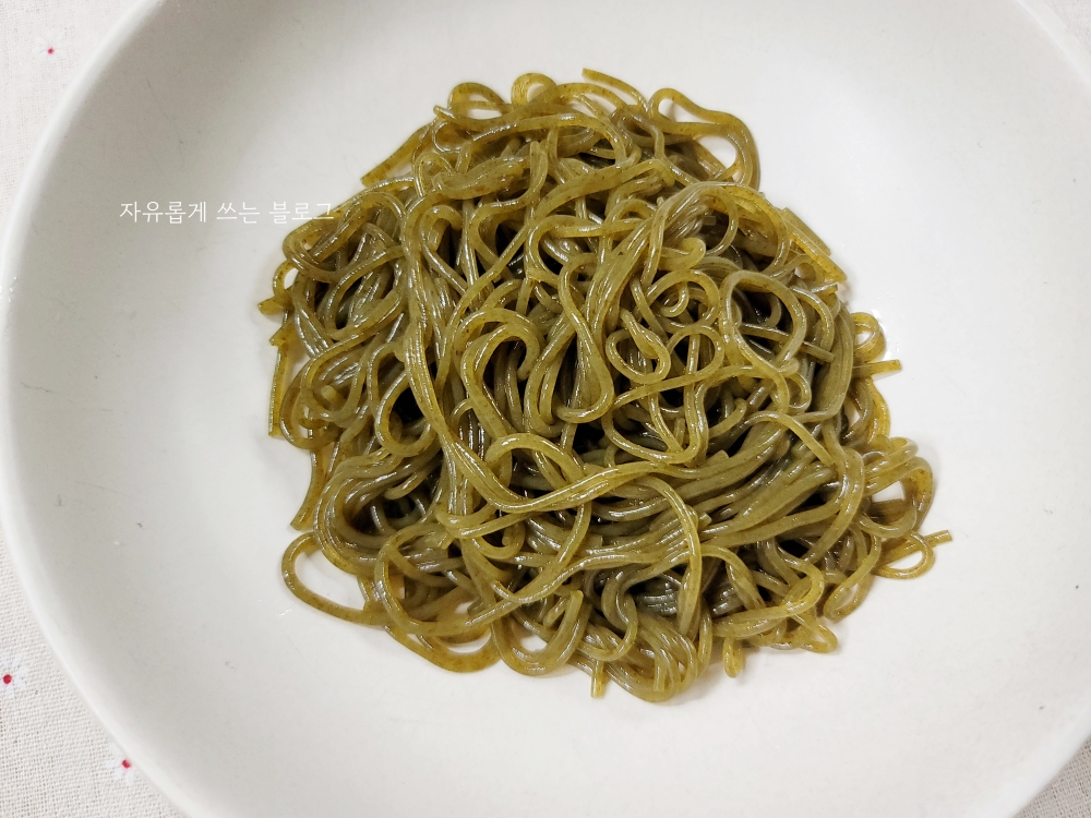 전분가 향료가 첨가되지 않은 해초면이라 삶지 않고 그대로 바로 먹을 수 있어요.