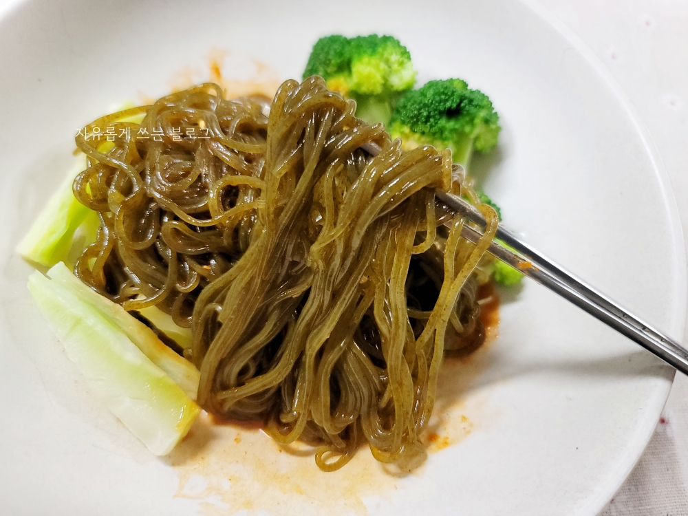 비빔국수, 메밀소바, 냉면, 온면 등에 국수 대용으로 사용해도 되고, 샐러드처럼 즐겨도 된다고 해요.