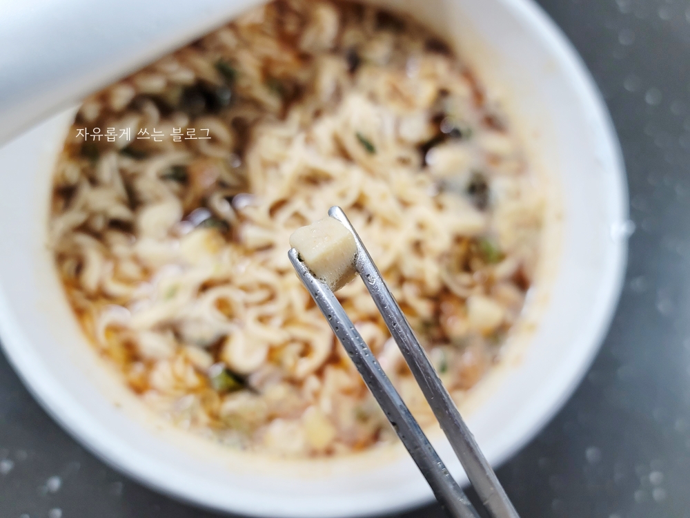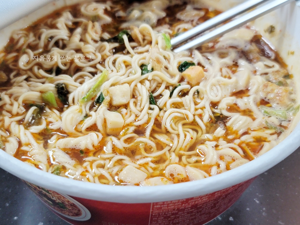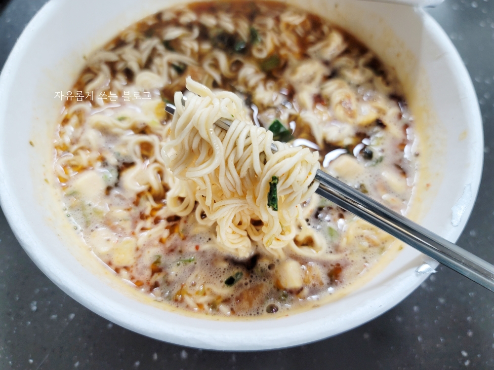 일단 면발 식감은 국내에서 파는 컵라면들의 식감이랑 비슷했어요. 적당히 부드러우면서 술술 넘어가는 느낌입니다.