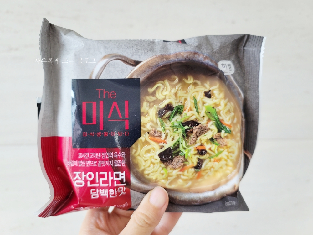아래 사진 속 제품이 바로 더미식 장인라면 담백한맛입니다.