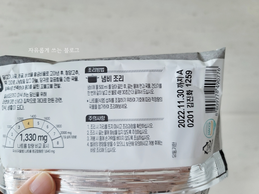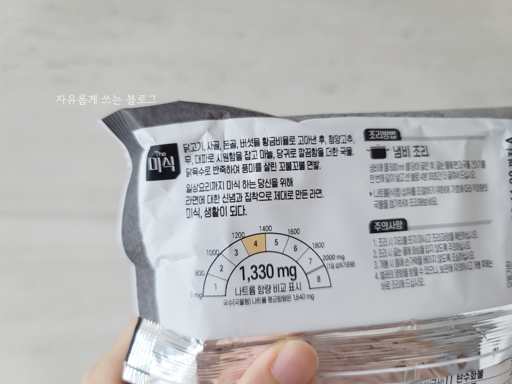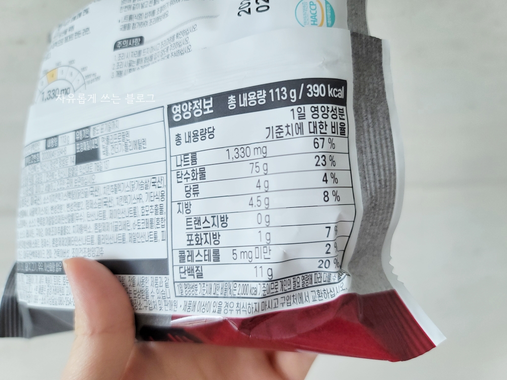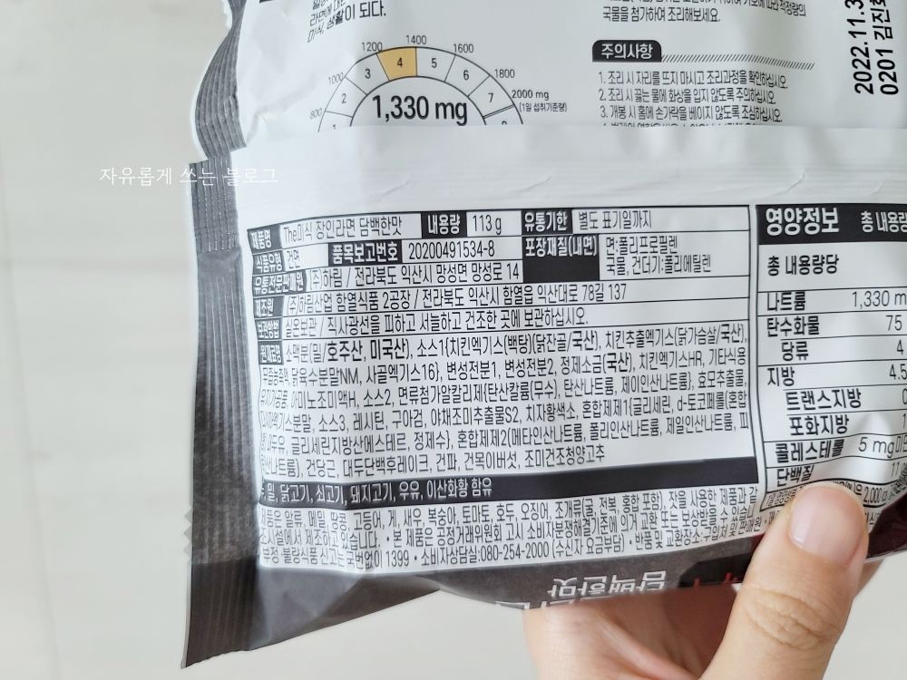 확실히 건면이라 칼로리가 낮네요. 나트륨은 1,330mg, 단백질도 11g 들어있다고 합니다.