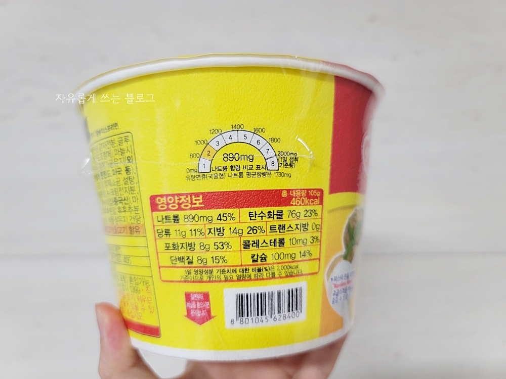 총 내용량 105g에 칼로리는 460kcal이고, 탄수화물, 당류, 지방, 단백질, 칼슘 등등이 골고루 들어가 있습니다.ㅎㅎ