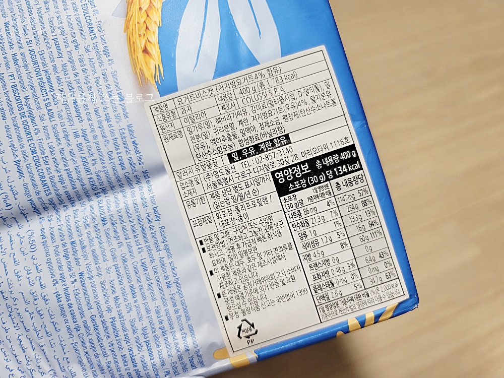 미주라 요거트 비스켓 칼로리는 30g당 134kcal라고 해요. 30g이면 약 5조각 정도에 해당하는 양인 것 같더라고요.