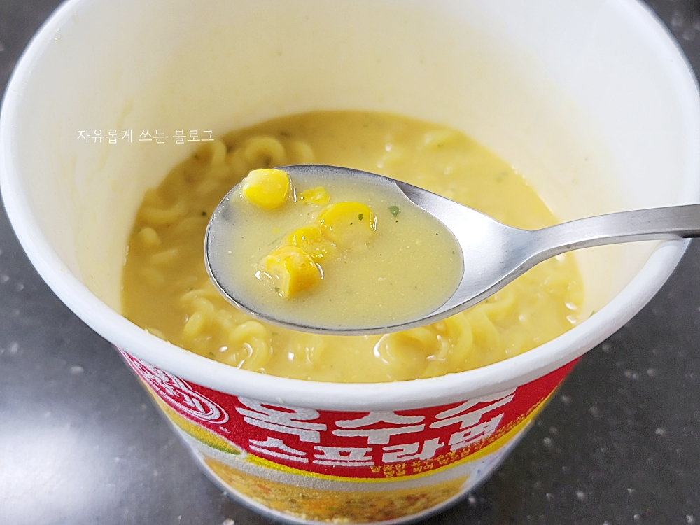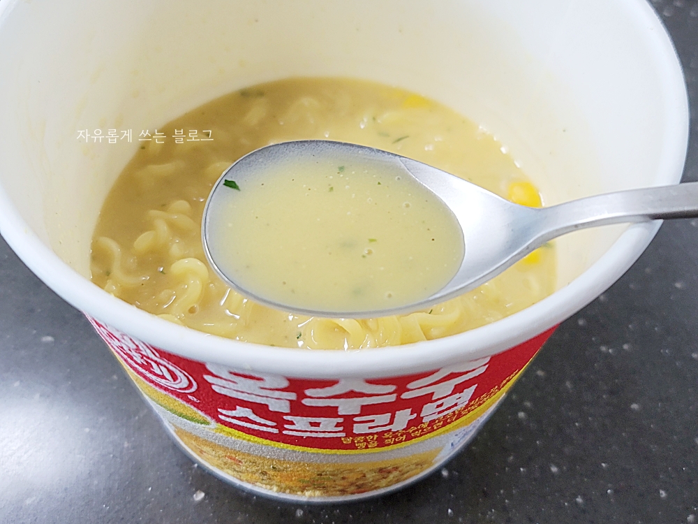 그리고 국물 맛을 보았는데요, 정말 오뚜기 옥수수스프 맛 그대로입니다.ㅎㅎ