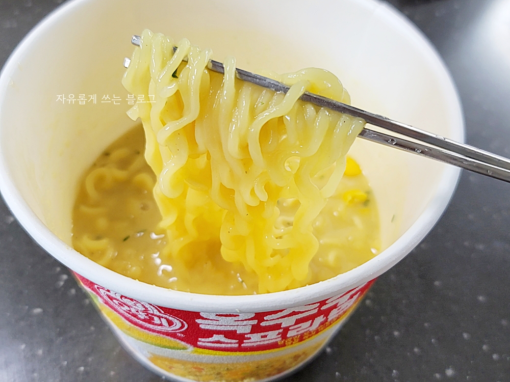 옥수수스프 라면 맛이 너무 궁금해서 참지 못하고 바로 맛을 보게 되었답니다.ㅎㅎ