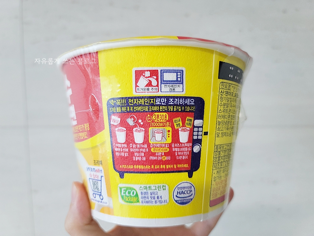 한쪽에는 조리방법이 설명되어 있어요. 꼭!! 전자레인지로만 조리하셔야 합니다.ㅎㅎ