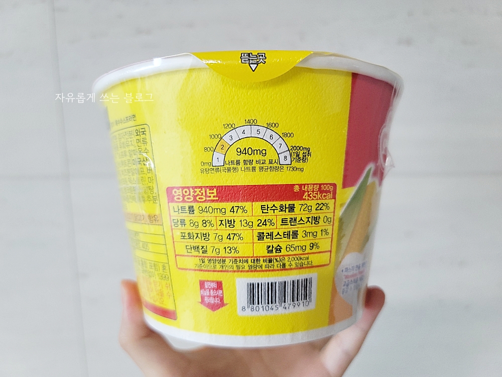 나트륨 함량은 940mg로 1일 영양성분 기준치의 47%에 해당합니다.