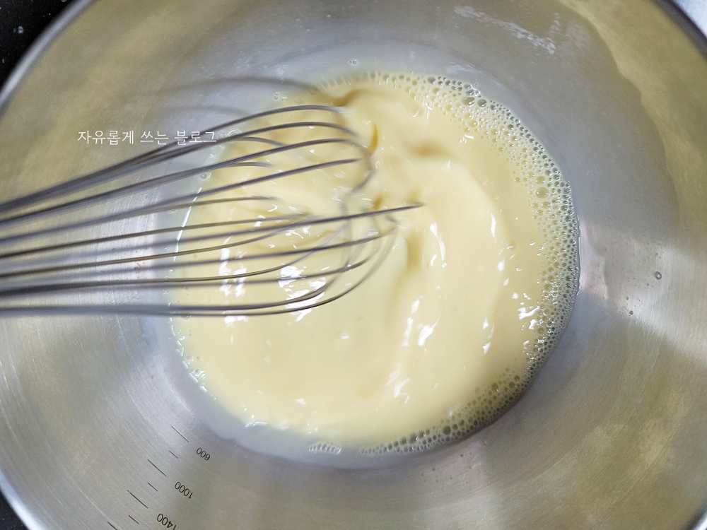 전 거품기를 이용해서 골고루 잘 섞어주었어요. :)