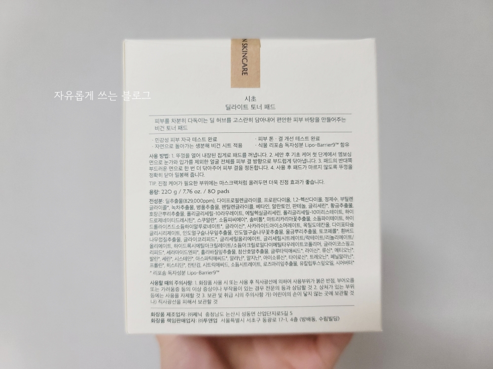 시초 딜라이트 토너패드는 약산성이라 민감한 피부도 사용 가능하며,